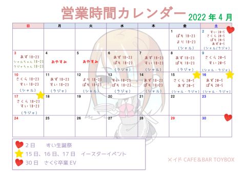 ★3月31日までの出勤カレンダー★ 3月22日~31日の出勤カレンダーです!! まん延防止等重点措置が解除となりますので、営業時間が【18~23時】に戻ります(^^♪ TOYBOXで夜も一緒に楽しみましょう!! https://t.co/Gj0Xw54NUs