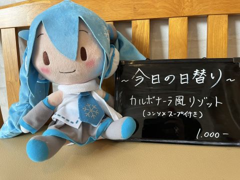 ★本日の日替り★ カルボナーラ風リゾット (コンソメスープ付き) 1000- https://t.co/F72Ebtlge3