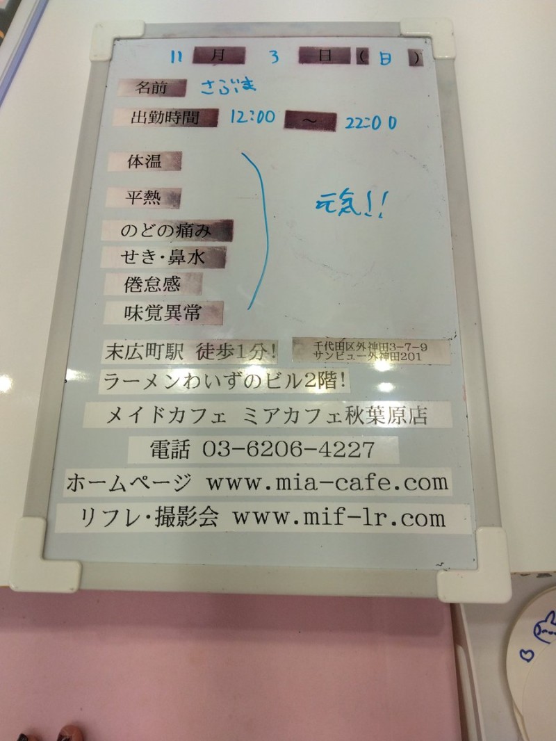 | å¶æ¥æé | âãã¢ã«ãã§æ±äº¬åºïŒã¡ã€ãã«ãã§ïŒhttp://www.mia-cafe.com/ãâ â¡å¹³æ¥ãæïœéãïŒïŒïŒïŒïŒïœïŒïŒïŒïŒïŒ â¡åæã»æ¥æã»ç¥æ¥ãïŒïŒïŒïŒïŒïœïŒïŒïŒïŒïŒ â å®äŒæ¥ããªãïŒ2019幎1æããå®äŒæ¥å»æ¢ïŒ â¡ã©ã¹ããªãŒããŒãéåºã®ïŒïŒåå ãïŒïŒïŒïŒïŒéåºã®å ŽåâïŒïŒïŒïŒïŒã©ã¹ããªãŒããŒ å¶æ¥æ¥ãåºå€ç¶æ³ã«ã€ããŠã¯ãã¡ãã http://pandaland.cutegirl.jp/mif/c_cms_csv/sch_top.php âãã¢ãªã©ïŒãã©ãæ±äº¬åºïŒæ®åœ±äŒïŒãªãã¬ïŒhttp://www.mif-lr.com/ãâ â¡å šæ¥ãïŒïŒïŒïŒïŒãïŒïŒïŒïŒïŒãã§ãããªã©ã¯ãŒãŒã·ã§ã³åºå€ã¹ã¿ãããããæé垯ã®ã¿å¶æ¥ã§ãã â å®äŒæ¥ã¯äžå®äŒïŒåºå€ã¹ã¿ãããããæé垯ã®å¶æ¥ïŒ â¡æçµåä»ãéåºã®ïŒïŒåå ãïŒïŒïŒïŒïŒéåºã®å ŽåâïŒïŒïŒïŒïŒïŒïŒïŒïŒïŒïŒè¿ã«æœè¡æéãçµããã³ãŒã¹ïŒ â»é«æ ¡çäžå¯ âæ·±å€å¶æ¥ã«ã€ããŠã¯ãå ¬åŒãµã€ãå³äžã® http://market.chu.jp/schedule1/sche37.cgi ãã¢ã°ã«ãŒãç·åã¹ã±ãžã¥ãŒã«ïŒïŒ°ïŒ£ã»ã¹ããïŒ http://market.chu.jp/schedule1/sche37.cgi?dm=1 ãã¢ã°ã«ãŒãç·åã¹ã±ãžã¥ãŒã«ïŒã¬ã©æºåž¯ïŒ ãã芧ãã ãããåç¥æ¥ã®ã¿å¶æ¥ãšãªããŸããåç¥æ¥ä»¥å€ã¯æ·±å€å¶æ¥ããããŠãããŸããã æ·±å€å¶æ¥å¯Ÿè±¡æ¥ãïŒïŒïŒïŒïŒãç¿æïŒïŒïŒïŒïŒïŒ¬ïŒïŒ¯ïŒïŒïŒïŒïŒïŒ | ||||||||||||||