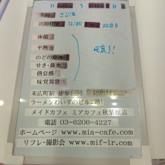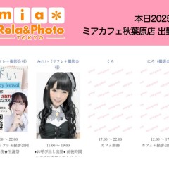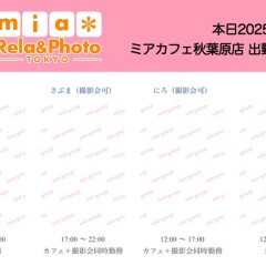| å¶æ¥æé | âãã¢ã«ãã§æ±äº¬åºïŒã¡ã€ãã«ãã§ïŒhttp://www.mia-cafe.com/ãâ â¡å¹³æ¥ãæïœéãïŒïŒïŒïŒïŒïœïŒïŒïŒïŒïŒ â¡åæã»æ¥æã»ç¥æ¥ãïŒïŒïŒïŒïŒïœïŒïŒïŒïŒïŒ â å®äŒæ¥ããªãïŒ2019幎1æããå®äŒæ¥å»æ¢ïŒ â¡ã©ã¹ããªãŒããŒãéåºã®ïŒïŒåå ãïŒïŒïŒïŒïŒéåºã®å ŽåâïŒïŒïŒïŒïŒã©ã¹ããªãŒããŒ å¶æ¥æ¥ãåºå€ç¶æ³ã«ã€ããŠã¯ãã¡ãã http://pandaland.cutegirl.jp/mif/c_cms_csv/sch_top.php âãã¢ãªã©ïŒãã©ãæ±äº¬åºïŒæ®åœ±äŒïŒãªãã¬ïŒhttp://www.mif-lr.com/ãâ â¡å šæ¥ãïŒïŒïŒïŒïŒãïŒïŒïŒïŒïŒãã§ãããªã©ã¯ãŒãŒã·ã§ã³åºå€ã¹ã¿ãããããæé垯ã®ã¿å¶æ¥ã§ãã â å®äŒæ¥ã¯äžå®äŒïŒåºå€ã¹ã¿ãããããæé垯ã®å¶æ¥ïŒ â¡æçµåä»ãéåºã®ïŒïŒåå ãïŒïŒïŒïŒïŒéåºã®å ŽåâïŒïŒïŒïŒïŒïŒïŒïŒïŒïŒïŒè¿ã«æœè¡æéãçµããã³ãŒã¹ïŒ â»é«æ ¡çäžå¯ âæ·±å€å¶æ¥ã«ã€ããŠã¯ãå ¬åŒãµã€ãå³äžã® http://market.chu.jp/schedule1/sche37.cgi ãã¢ã°ã«ãŒãç·åã¹ã±ãžã¥ãŒã«ïŒïŒ°ïŒ£ã»ã¹ããïŒ http://market.chu.jp/schedule1/sche37.cgi?dm=1 ãã¢ã°ã«ãŒãç·åã¹ã±ãžã¥ãŒã«ïŒã¬ã©æºåž¯ïŒ ãã芧ãã ãããåç¥æ¥ã®ã¿å¶æ¥ãšãªããŸããåç¥æ¥ä»¥å€ã¯æ·±å€å¶æ¥ããããŠãããŸããã æ·±å€å¶æ¥å¯Ÿè±¡æ¥ãïŒïŒïŒïŒïŒãç¿æïŒïŒïŒïŒïŒïŒ¬ïŒïŒ¯ïŒïŒïŒïŒïŒïŒ | ||||||||||||||