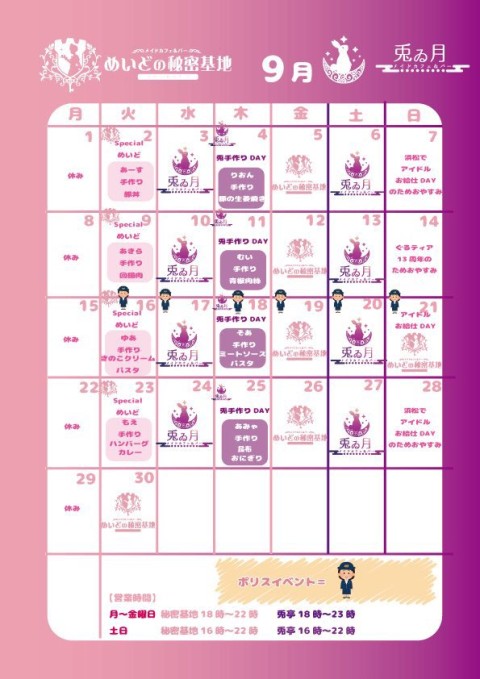 | 営業時間 | *火曜日~金曜日*18:00~23:00 *土曜日、日曜日*16:00~23:00 *月曜日、木曜日*定休日 (イベントなどで営業時間が変わることがあります。) | ||||||||||||||