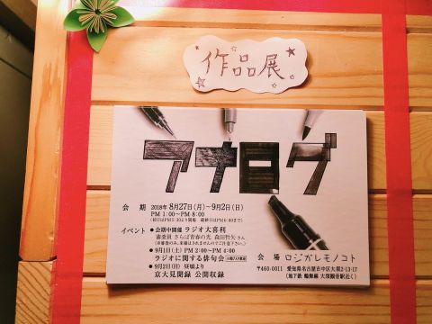 【お知らせ】 先程、ラジオがテーマのグループ展「アナログ」の方からチラシを頂きました! 会期:2018年8月27日(月)〜9月2日(日) 会場:ロジガレモノコト (愛知県名古屋市中区大須2-13-17) Twitter @analog_radio_N チラシは受付前に置いてますので 興味ある方は是非✨ https://t.co/Os8VMgmfa2